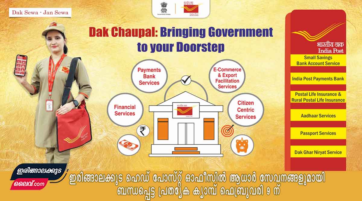 അറിയിപ്പ് : ഇരിങ്ങാലക്കുട ഹെഡ് പോസ്റ്റ് ഓഫീസിൽ ആധാർ സേവനങ്ങളുമായി ബന്ധപ്പെട്ട പ്രത്യേക ക്യാമ്പ് ഫെബ്രുവരി 9 തിങ്കളാഴ്ച രാവിലെ…