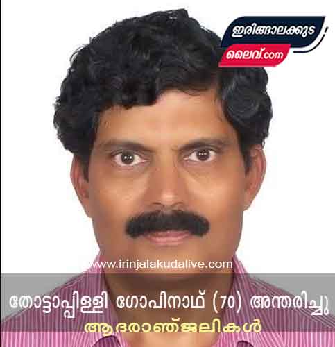 ചരമം : തോട്ടാപ്പിള്ളി ഗോപിനാഥ് (70) , ‘ജ്യോതി’, എം ജി റോഡ് അന്തരിച്ചു. ഭാര്യ : അംബിക, മക്കൾ…
