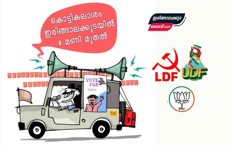 കൊട്ടികലാശം കളറാക്കാന് മുന്നണികള് – ഇരിങ്ങാലക്കുടയിൽ 4 മണി മുതൽ – വിവിധ രാഷ്ട്രീയ പാർട്ടികളുടെ സമയക്രമങ്ങളും സ്ഥലങ്ങളും അറിയാം