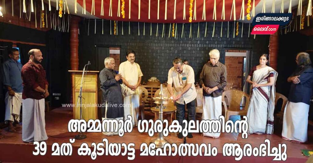 ഇരിങ്ങാലക്കുട : അമ്മന്നൂർ ഗുരുകുലത്തിൻ്റെ 39 മത് കൂടിയാട്ടമഹോത്സവം ഇരിങ്ങാലക്കുട പബ്ലിക് പ്രോസിക്യൂട്ടർ അഡ്വ. ജോജി ജോർജ് ഇരിങ്ങാലക്കുടയിലെ മാധവനാട്യഭൂമിയിൽ ഉദ്ഘാടനം ചെയ്തു. വേണുജി അദ്ധ്യക്ഷതവഹിച്ച യോഗത്തിൽ പി .നന്ദകുമാർ പരമേശ്വരചാക്യാർ അനുസ്മരണവും കേളിരാമ ചന്ദ്രൻ എടനാട് സരോജിനി നങ്ങ്യാരമ്മ അനുസ്മരണവും നടത്തി.