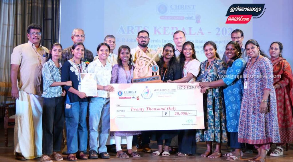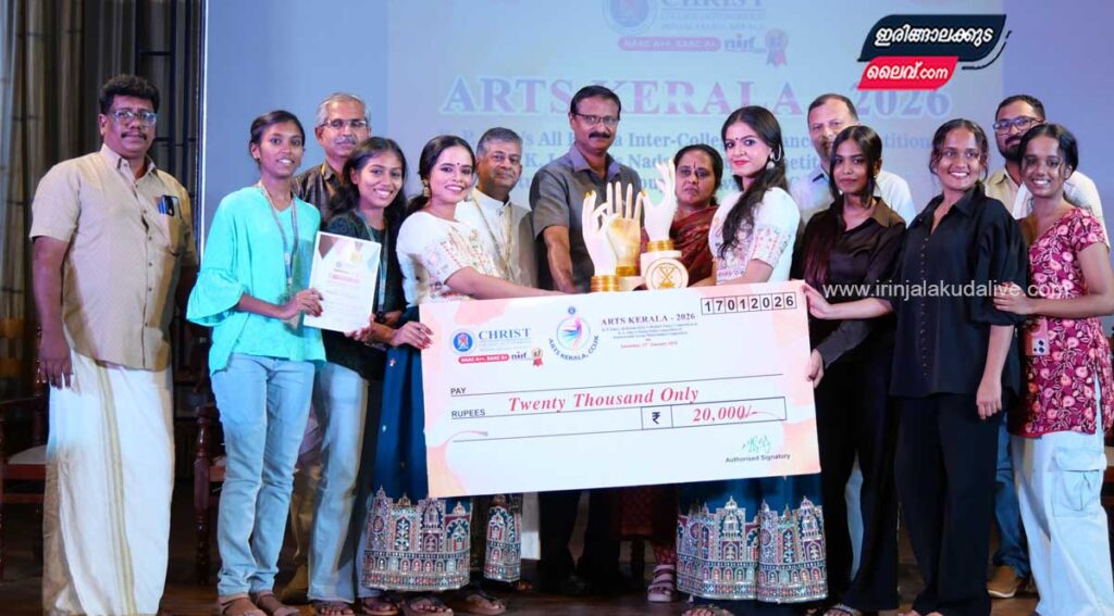 ഇരിങ്ങാലക്കുട : ക്രൈസ്റ്റ് കോളേജ് ആതിഥ്യം വഹിച്ച ആർട്സ് കേരള കലോത്സവത്തിന് വർണ്ണാഭമായ സമാപനം. സംഘനൃത്തവും നാടൻപാട്ടും തിരുവാതിരക്കളിയുമായിരുന്നു ആയിരുന്നു ഈ വർഷത്തെ മത്സരയിനങ്ങൾ.