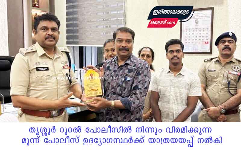 ശനിയാഴ്ച വൈകീട്ട് സംഘടിപ്പിച്ച ചടങ്ങ് തൃശ്ശൂർ റൂറൽ ജില്ലാ പോലീസ് മേധാവി ബി. കൃഷ്ണകുമാർ ഐ.പി.എസ്. ഉദ്ഘാടനം ചെയ്തു. ഉദ്യോഗസ്ഥരുടെ സേവനകാലത്തെ അഭിനന്ദിച്ച അദ്ദേഹം, അവർക്ക് പ്രശംസാപത്രങ്ങൾ കൈമാറുകയും ഭാവി ജീവിതത്തിന് ആശംസകൾ നേരുകയും ചെയ്തു.