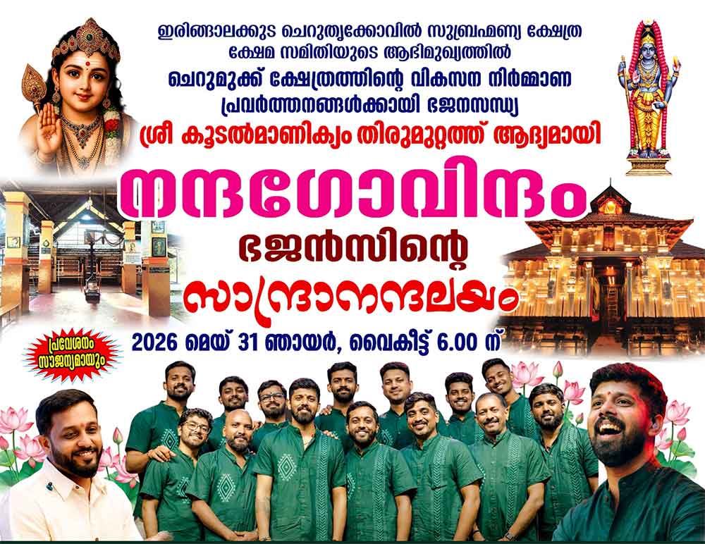 The offering ceremony for the Sandranandalayam program of Nandagovindam Bhajans was held at the Cherumukku temple.