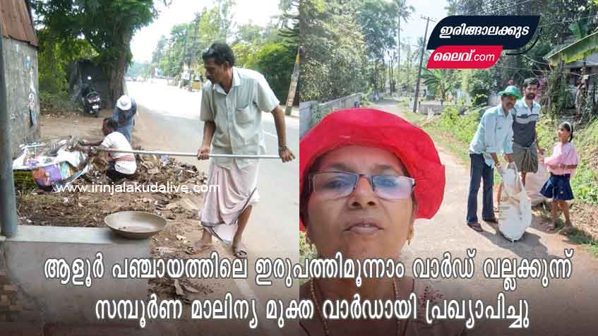 വല്ലക്കുന്ന് : മാലിന്യമുക്ത പഞ്ചായത്തായി മാറ്റുന്നതിന്റെ ഭാഗമായി ആളൂർ പഞ്ചായത്തിലെ ഇരുപത്തിമൂന്നാം വാർഡ് വല്ലക്കുന്ന് സമ്പൂർണ മാലിന്യമുക്ത വാർഡായി പ്രഖ്യാപിച്ചു. ഉദ്ഘാടനവും പ്രഖ്യാപനവും വാർഡ് മെമ്പർ മേരി ഐസക്ക് ടീച്ചർ നിർവഹിച്ചു. വല്ലക്കുന്ന് അംഗനവാടിയിൽ നടന്ന ചടങ്ങിൽ മുൻ പഞ്ചായത്ത് മെമ്പർ ത്രേസ്യാമ്മ ജോർജ് അധ്യക്ഷത വഹിച്ചു.